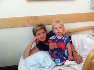 She ushers us into his room, where I'm overwhelmed by a dozen people in the room, Adam hooked up to oxygen, IV's, electrodes ---- looking completely out of it. And not totally aware that we were in the room. Just a tad bit scary. No actually, that moment of me just walking in - no one having said anything to me yet - was definitely one of the top 5 most scary moments of my life. Noella had no clue what was going on. If she did, she probably would have been crying and clinging to me, but she just looked extremely confused and kept saying "Dada, nigh-night?".